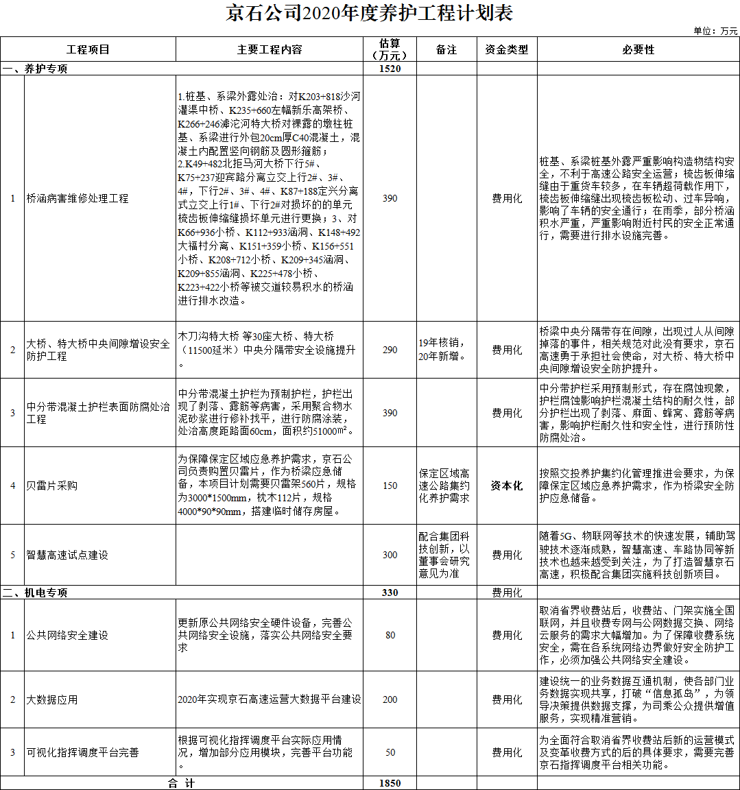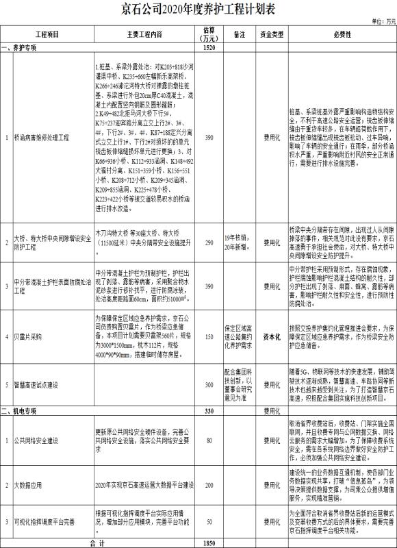 2020年度京石高速養(yǎng)護(hù)工程計劃
