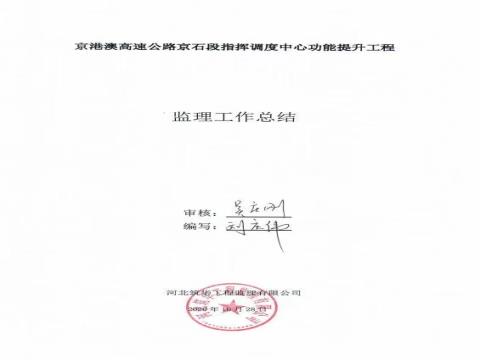 京港澳高速公路京石段指揮調(diào)度中心功能提升工程監(jiān)理工作總結(jié)