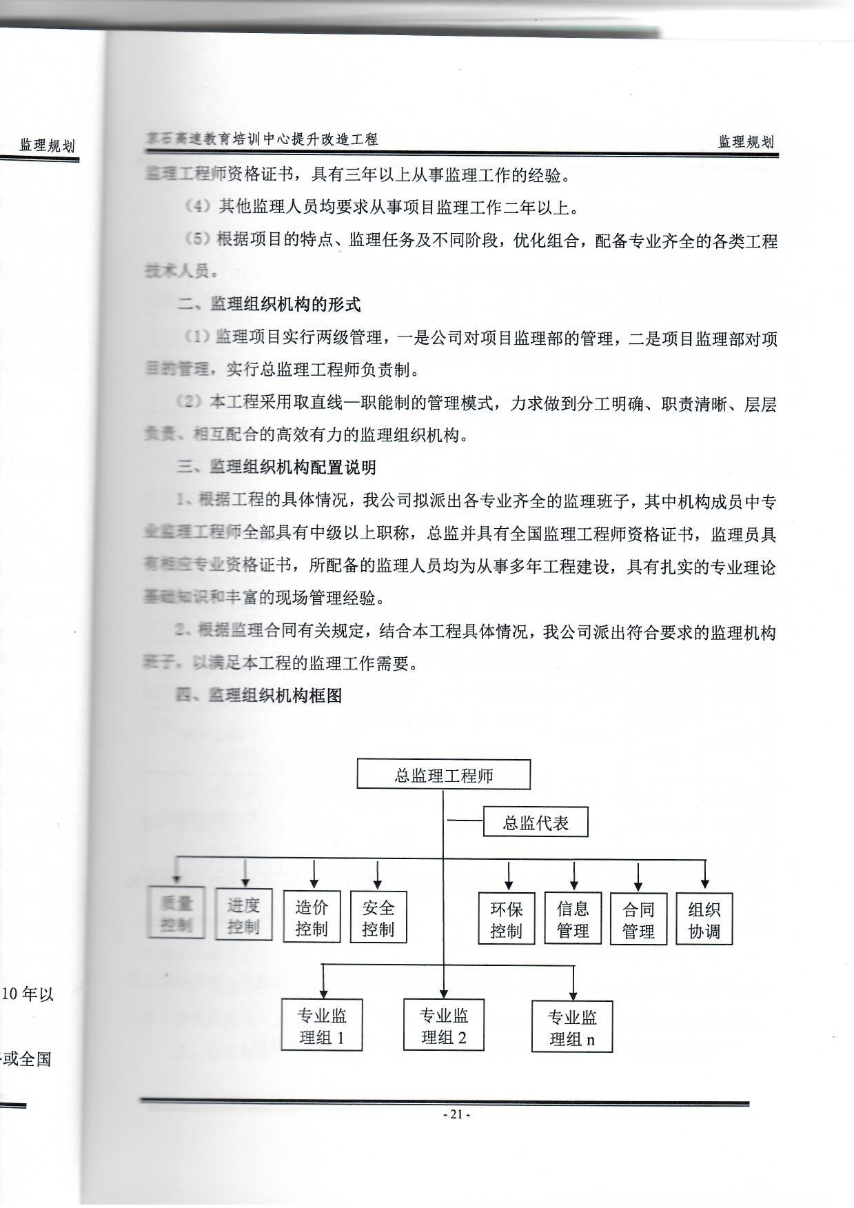 教育培訓(xùn)中心提升改造工程監(jiān)理組織架構(gòu)