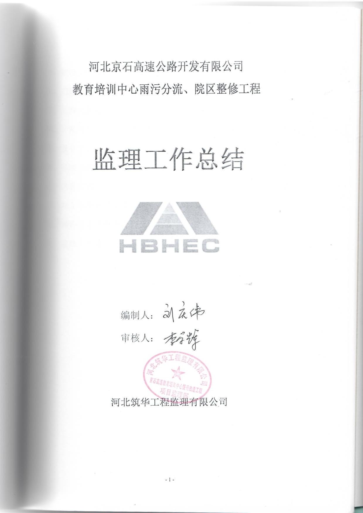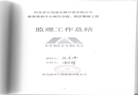 教育培訓(xùn)中心雨污分流改造與院區(qū)整修工程監(jiān)理總結(jié)