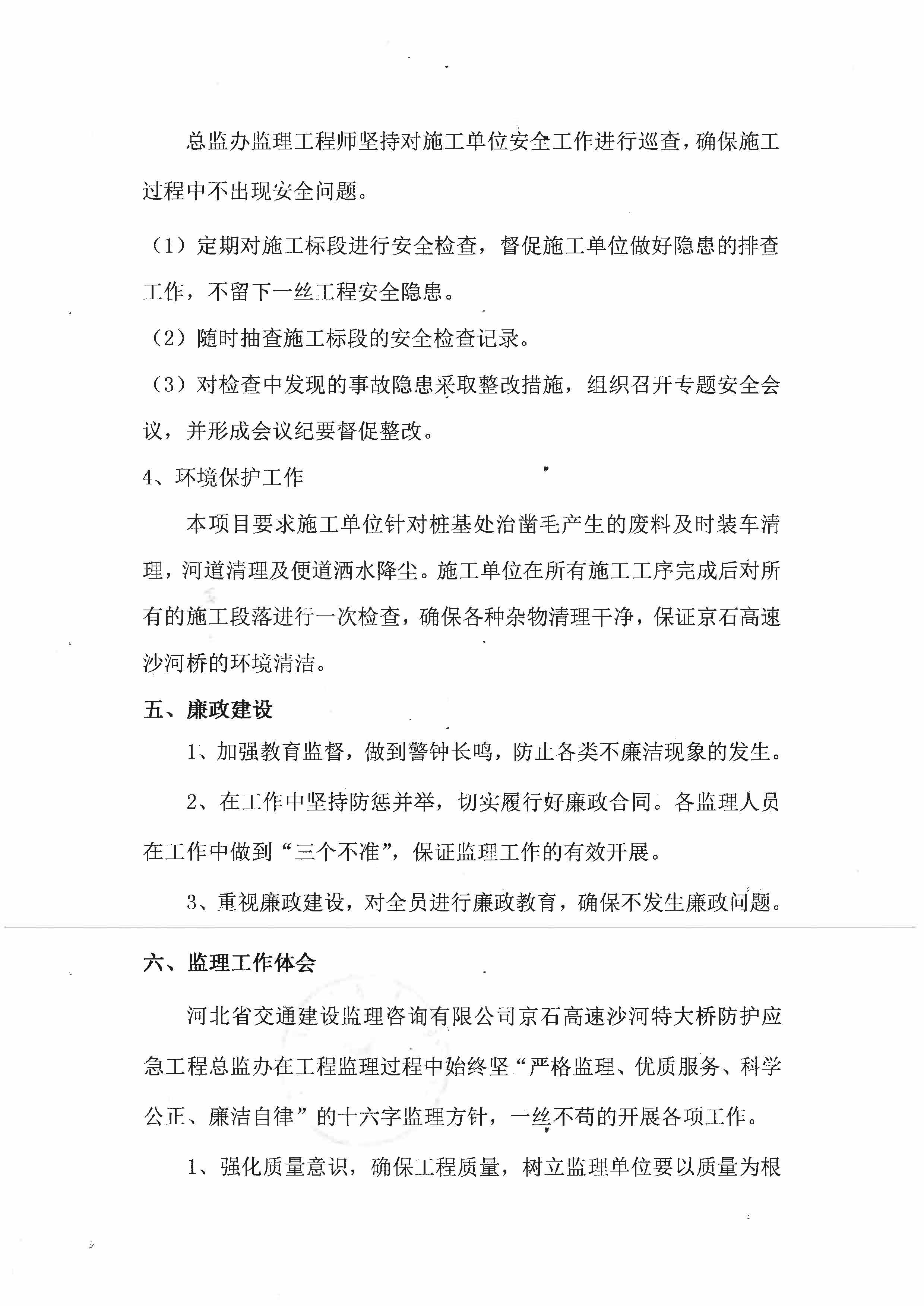 京港澳高速京石段沙河特大橋防護(hù)應(yīng)急工程監(jiān)理報(bào)告