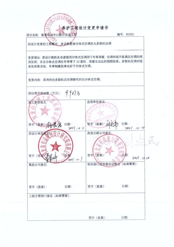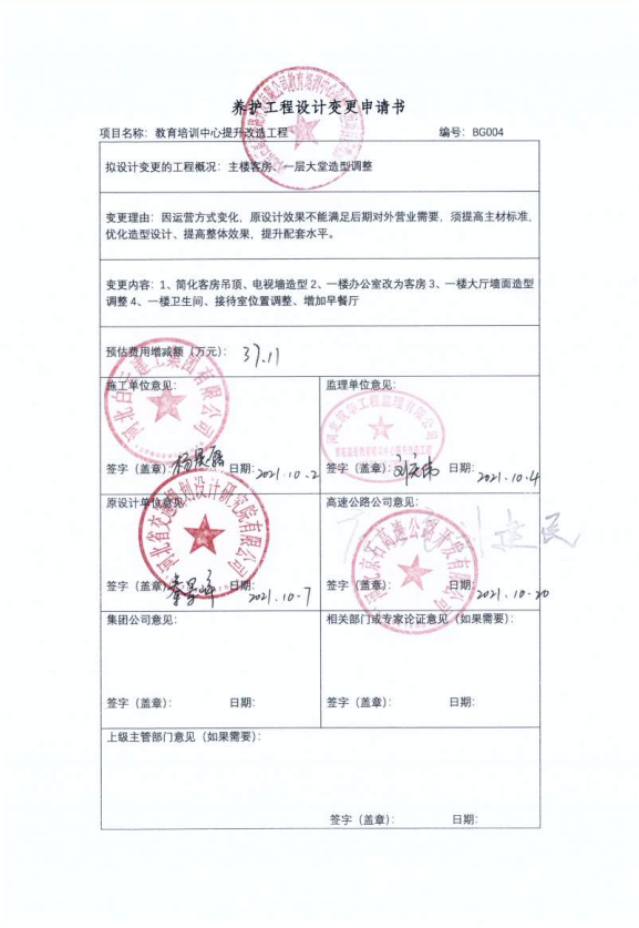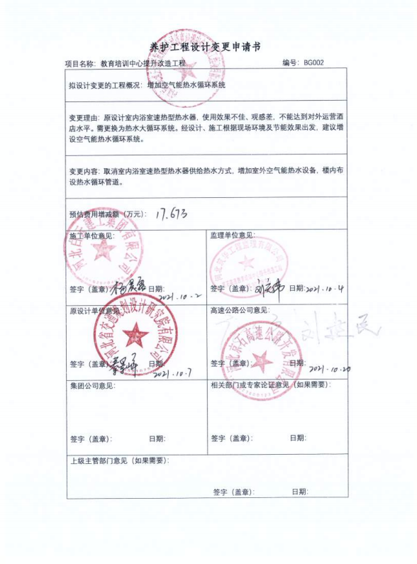 河北京石高速公路開(kāi)發(fā)有限公司教育培訓(xùn)中心提升改造工程一期設(shè)計(jì)變更