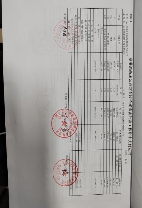 京港澳高速公路京石段橋涵病害維修處治工程YH-3標(biāo)段支付證書