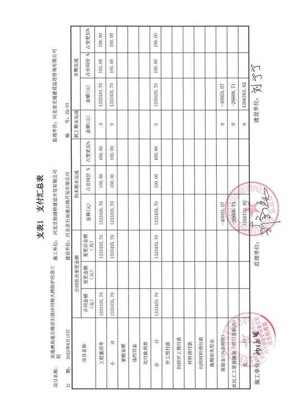 沙河特大橋樁基防護應急工程支付證書