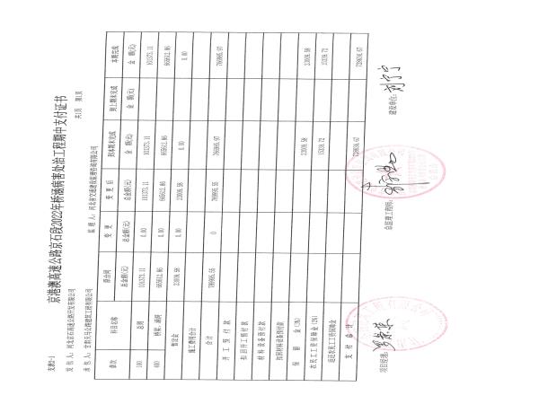 2022年橋涵病害維修處治工程QH-1標(biāo)段支付證書