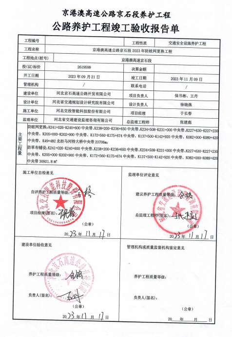 京港澳高速公路京石段2023年防眩網(wǎng)更換工程竣工驗收