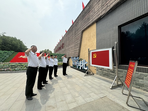 抵達(dá)冉莊地道戰(zhàn)紀(jì)念館后,黨員們面對鮮紅的黨旗,黨員們高舉右拳,重溫入黨誓詞?!拔抑驹讣尤胫袊伯a(chǎn)黨…… 隨時(shí)準(zhǔn)備為黨和人民犧牲一切,永不叛黨?!?鏗鏘有力的誓言在廣場上空回蕩,每一位黨員的心靈都受到了強(qiáng)烈震撼,更加堅(jiān)定了為共產(chǎn)主義事業(yè)奮斗終身的理想信念。