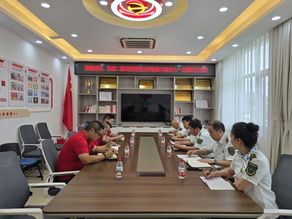 活動由健康城站黨支部書記開場致辭,介紹活動背景與意義,強調(diào)安全注意事項;隨后的黨史學(xué)習(xí)環(huán)節(jié),通過支部書記講解的形式,帶領(lǐng)黨員們回顧黨的光輝歷程,激發(fā)愛黨愛國情懷。黨史學(xué)習(xí)后,兩支部圍繞京雄二期施工車輛超限超載治理問題展開專題研討。黨員們結(jié)合健康城站與京雄二期項目的實際工作場景,深入分析當(dāng)前治理工作中存在的難點進行研討,旨在通過黨建引領(lǐng),凝聚治理合力,筑牢安全防線。最后,全體黨員與作品合影留念,定格這一意義非凡的時刻。