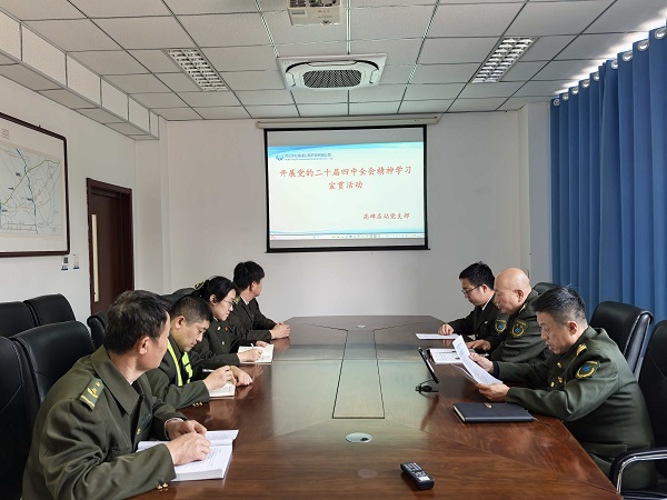 為深入學(xué)習(xí)、宣傳并貫徹黨的二十屆四中全會(huì)精神,切實(shí)將學(xué)習(xí)與實(shí)際工作相融合,為全體黨員注入強(qiáng)大精神動(dòng)力,11月3日,高碑店站黨支部扎實(shí)開展“二十屆四中全會(huì)精神”學(xué)習(xí)宣貫活動(dòng)。此次活動(dòng)由黨支部書記孫克瞳主持,全體黨員參加。