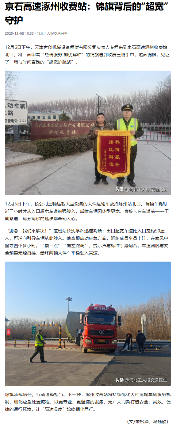 京石高速涿州收費站:錦旗背后的“超寬”守護(hù)