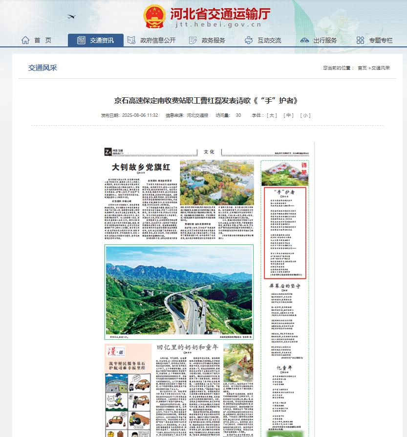 【河北省交通運(yùn)輸廳】京石高速保定南收費(fèi)站職工曹紅磊發(fā)表詩(shī)歌《“手”護(hù)者》