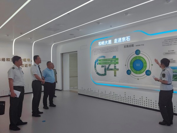 朱斌一行首先參觀了京石公司智慧調(diào)度大廳,深入了解了路警聯(lián)合運(yùn)行機(jī)制流程,實(shí)地觀摩了智慧監(jiān)控、應(yīng)急調(diào)度、數(shù)據(jù)研判等功能模塊的協(xié)同運(yùn)作。隨后前往企業(yè)展廳,系統(tǒng)了解了京石公司的發(fā)展藍(lán)圖、企業(yè)文化,及近年來(lái)在創(chuàng)新創(chuàng)效和科技研發(fā)領(lǐng)域取得的豐碩成果。