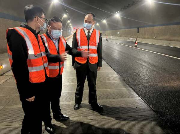 此次施工項目為隧道內(nèi)瀝青薄層罩面,考察人員在施工現(xiàn)場觀摩了瀝青薄層施工工藝流程,詢問了施工中的注意事項和細節(jié)問題,施工單位負責人現(xiàn)場進行解答,并介紹了薄層罩面施工工藝的特色和優(yōu)點??疾烊藛T和施工單位技術人員對瀝青薄層罩面施工工藝特點、環(huán)保特性,質量控制點、工期進度、安全措施保障等方面進行交流研討。