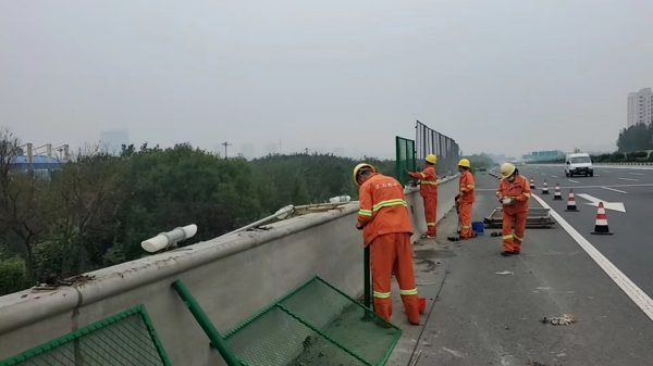 養(yǎng)護人員分組、分區(qū)段、分項目對轄段內(nèi)沿線標志標牌、交通標線、護欄、聲屏障及防眩設施等交安設施進行了勘查,并且對收費站引線、橋梁被交道的交安設施進行了全面檢查。對于沿線護欄板防阻塊變形或缺失、螺栓及墊片缺失、搭接不規(guī)范等重點問題加大排查整改力度,及時修復中央帶防眩網(wǎng),緊固標志標牌的螺絲、螺栓,清洗擦拭臟污的標志標牌,及時補充粘貼反光標志,確保交安設施清晰、醒目。