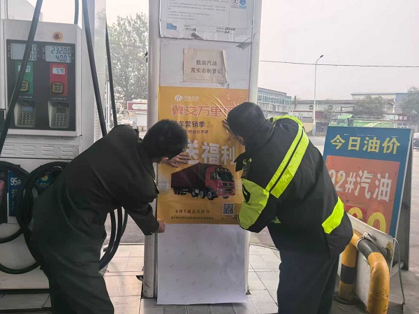 隨后,引流小組在海油加油站現(xiàn)場設(shè)立宣傳點,向過往加油的貨車司機們積極宣傳“冀交萬里行”貨車營銷活動。工作人員通過發(fā)放宣傳彩頁、現(xiàn)場講解、手把手指導(dǎo)注冊等方式,耐心向司機師傅們介紹小程序的注冊流程及使用方法,讓大家直觀感受到各項福利政策。同時,引流小組還重點推廣了“空車配載”服務(wù),詳細解釋了該服務(wù)如何幫助司機快速匹配貨源、減少空駛里程、增加運輸收入,實現(xiàn)“貨找車、車找貨”的高效匹配,真正做到“一站直達”的高效物流體驗。