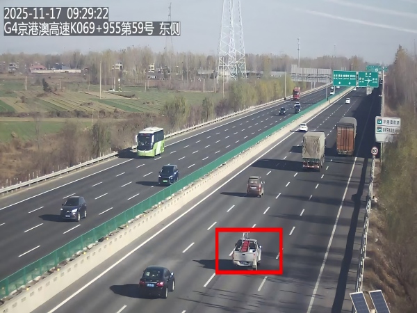9時40分,第一養(yǎng)護(hù)工區(qū)工作人員抵達(dá)事發(fā)地點,迅速開展應(yīng)急清理作業(yè):工作人員規(guī)范設(shè)置安全警示區(qū)域后,快速將散落的金屬梯子拖移至應(yīng)急車道,隨后高效完成路面清理及安全隱患排查,確保道路通行條件全面恢復(fù)。與此同時,溯源調(diào)查工作也在緊鑼密鼓推進(jìn)。因掉落障礙物處于監(jiān)控攝像頭盲區(qū),無法直接捕捉到具體掉落車輛,監(jiān)控員及時轉(zhuǎn)變排查思路,通過調(diào)取沿線監(jiān)控視頻,重點篩查載有金屬梯子的貨車軌跡,并逐一對比障礙物出現(xiàn)前后的鏡頭畫面,核查貨車裝載情況。經(jīng)過半小時的細(xì)致篩查與精準(zhǔn)比對,監(jiān)控員在K69+955路段監(jiān)控鏡頭下發(fā)現(xiàn)一輛藍(lán)牌小貨車,其車廂內(nèi)明確載有同款金屬梯子;而在K69+005路段的后續(xù)監(jiān)控畫面中,該貨車車廂內(nèi)的梯子已消失不見。據(jù)此,成功鎖定車牌號為冀FZXXXX的嫌疑車輛,并迅速整合車輛通行軌跡、全程監(jiān)控視頻、現(xiàn)場處置照片等關(guān)鍵證據(jù),構(gòu)建形成完整閉環(huán)的證據(jù)鏈,第一時間反饋至高速交警涿州大隊。交警部門隨即對責(zé)任車輛駕駛?cè)碎_展交通安全警示教育,壓實安全主體責(zé)任。