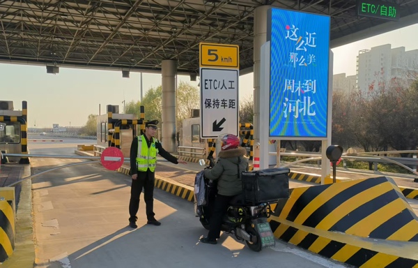 2025年11月19日,京石高速涿州收費站工作人員成功勸阻一名欲騎電動車上高速送餐的外賣員,經(jīng)過工作人員的耐心勸導(dǎo),最終通過合規(guī)方式配送,既守住了交通安全底線,又解決了外賣員的燃眉之急。