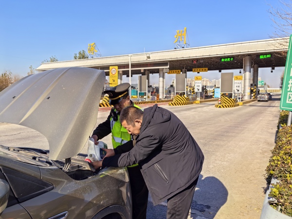 接到報(bào)告后,王松青沒(méi)有絲毫耽擱,第一時(shí)間來(lái)到故障車輛前。經(jīng)初步查看和與司機(jī)溝通,確認(rèn)車輛是因缺乏防凍液導(dǎo)致發(fā)動(dòng)機(jī)“開(kāi)鍋”,無(wú)法繼續(xù)行駛。面對(duì)司機(jī)焦急無(wú)奈的神情,王松青沉著安撫道:“您別著急,我們站的便民服務(wù)亭里備有常用的防凍液,我這就去給您取來(lái)?!?/p>