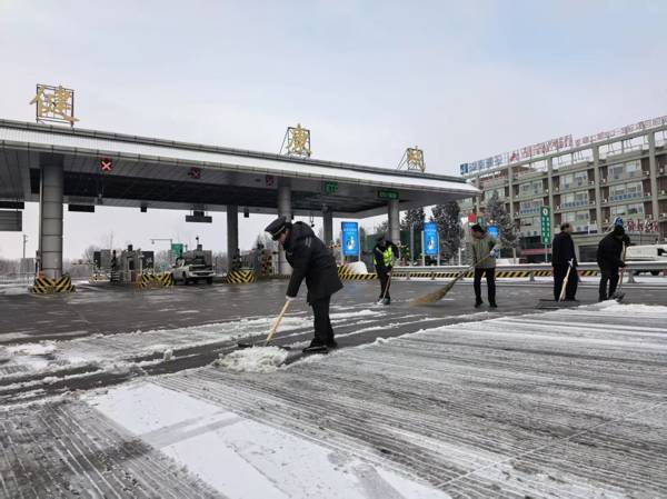 未雪綢繆,聞雪而動。在接到降雪預警后,健康城收費站提前備足應急物資,合理部署人員力量。降雪開始后,本站立即啟動應急預案,人員設備第一時間到位,采取機械與人工相結(jié)合的方式,對收費廣場、車道及連接道路展開循環(huán)清雪作業(yè)。通過及時潑灑融雪劑并快速清理,有效防止了道路結(jié)冰,確保了“雪停路清”,保障了車輛安全快速通行。