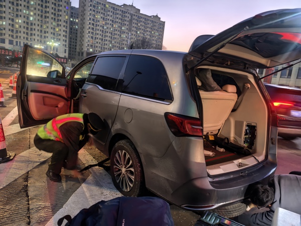 據(jù)了解,車上乘客是專程來(lái)涿州游玩的外地游客,本打算繼續(xù)行程,卻不料車輛突發(fā)故障,人生地不熟的他們一時(shí)間手足無(wú)措。收費(fèi)員發(fā)現(xiàn)車輛停滯在路口后,立刻上前詢問(wèn)情況,在得知是車胎漏氣的問(wèn)題后,沒(méi)有絲毫猶豫,迅速取來(lái)維修工具,蹲在車旁開(kāi)始幫忙更換輪胎。