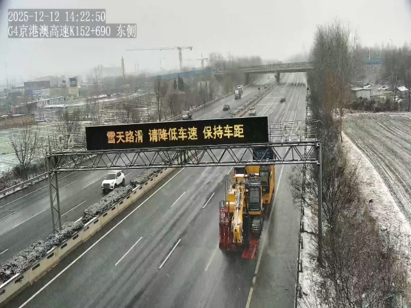 在路況監(jiān)測方面,智調(diào)中心利用外場視頻監(jiān)控系統(tǒng)加密巡查頻次,實時掌握降雪動態(tài)及路面狀況,并第一時間反饋至各養(yǎng)護工區(qū)。信息發(fā)布上,通過可變情報板發(fā)布信息522屏次,通過網(wǎng)站、高德百度導(dǎo)航、交通廣播、微信等多渠道,及時發(fā)布路況信息、降雪預(yù)警及安全行車提示219條,通過點對點5G發(fā)送信息5589條,接聽熱線電話809次,有效引導(dǎo)車輛合理規(guī)劃路線,規(guī)避通行風(fēng)險。