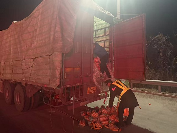 當(dāng)班班長(zhǎng)立即用對(duì)講機(jī)呼叫支援。不過(guò)幾十秒,兩個(gè)身著反光背心的身影小跑過(guò)來(lái)。沒(méi)有指揮,沒(méi)有多話,他們很自然地蹲下身,和司機(jī)一起將滾落的胡蘿卜攏成小堆。寒夜里,只聽(tīng)見(jiàn)短促的呼吸聲,和胡蘿卜被輕輕放入車中的“哐、哐”輕響。