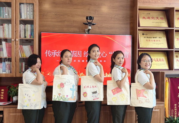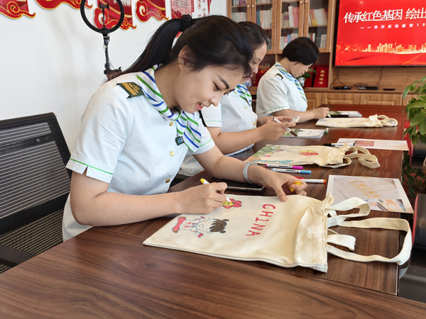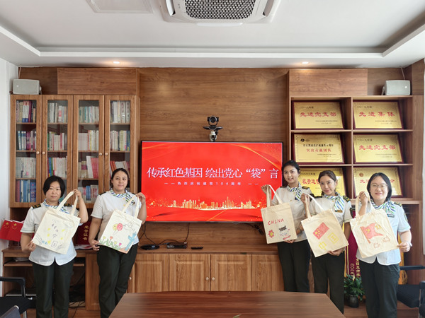 活動中,員工們互幫互助、共同進(jìn)步。繪畫技藝嫻熟的員工主動分享繪畫技巧,耐心地指導(dǎo)不太熟練的同事,幫助他們完善作品。在這種相互學(xué)習(xí)、相互借鑒的良好氛圍中,原本樸素?zé)o華的帆布包逐漸變得色彩斑斕、獨(dú)具特色。每一個帆布包都像是一個小小的紅色載體,承載著員工們對黨的深厚情感和美好祝愿。