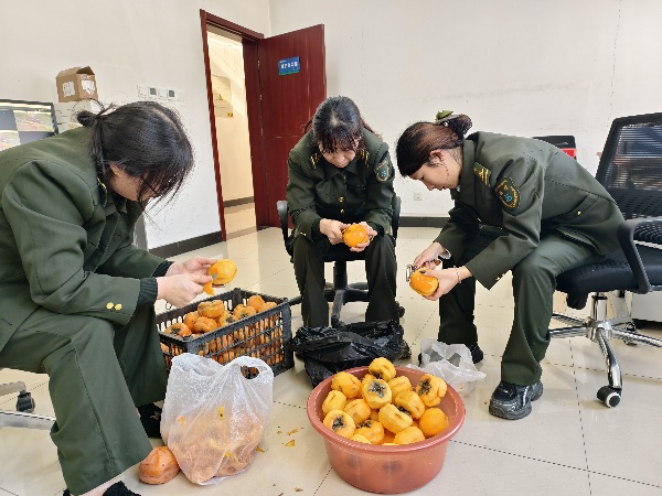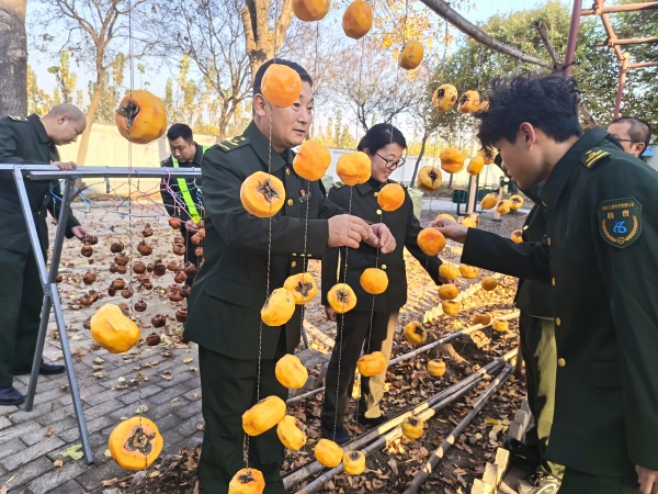 活動現(xiàn)場暖意涌動,分工會提前籌備了新鮮甘甜的柿子,職工們分工明確、熱情高漲。有的專注分揀柿子,削皮并細致清理蒂部殘留;有的嫻熟捻動棉線,將柿子穩(wěn)穩(wěn)穿成串,一串串艷紅的果實在指尖漸次成型;還有的默契配合,將串好的柿子有序懸掛在收費站的葡萄架下。暖陽映照下,紅彤彤的柿子似瑪瑙般垂掛于枝葉間,與職工們忙碌的身影交織成一幅生動的畫卷,爽朗的笑聲在庭院中久久回蕩。這片綴滿紅柿的葡萄架,更成了職工們爭相打卡的“網(wǎng)紅角落”,大家紛紛駐足留影,定格這份冬日里的甜蜜與溫馨。