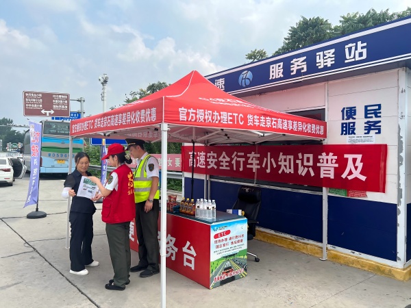 活動現(xiàn)場,定興站工作人員在站口設置了醒目且溫馨的宣傳臺和咨詢點。在炎熱的夏季為過往的司乘人員準備了礦泉水、濕巾等防暑用品??紤]到夏季高溫天氣對高速行車的影響,工作人員著重開展了夏季高速安全行車小知識普及活動。從車輛輪胎的保養(yǎng)、發(fā)動機的散熱,到高溫天氣下駕駛員的疲勞預防等方面耐心細致地為司乘人員講解,提醒他們注意夏季行車的安全隱患。